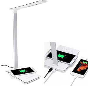 Led Desk Lamp Qi Wireless Charger With Usb Charging Port 5w Table Lamps For Bedroom Study Touch Control Dimmable Wireless Charging Nightstand Office Lamps Brightness Adjustable Timing Poweroff White Amazon Com